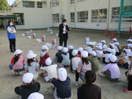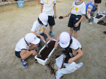 植物を育てることを通して,命の大切さ,育てることの大切さを感じてもらうために,チューリップの球根を2年生に植えてもらいました。大切に育てて,春にはきれいな花を咲かせてほしいですね