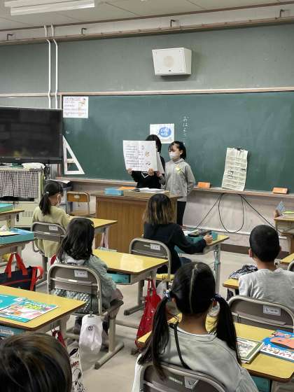 朝の時間に、保健給食委員会の児童がペロリンレストランのルールの説明を各クラスにしにいきました。投票日は12月2日・5日の予定です。各クラスで栄養満点のおいしいレストランのメニューを考えてくださいね!