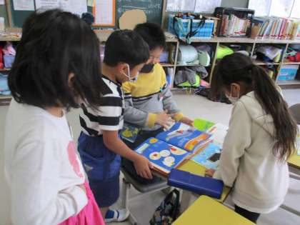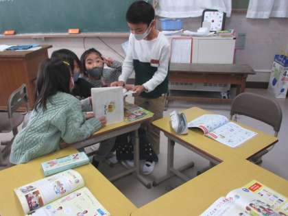 「おもちゃづくり」について,本を使ってグループで相談していました。