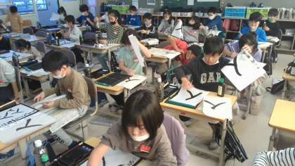 久しぶりに習字をしました。はらいに気を付けて,「人」という字を書きました。とても集中していました。準備や後片付けも,とてもスムーズにできるようになってきました!