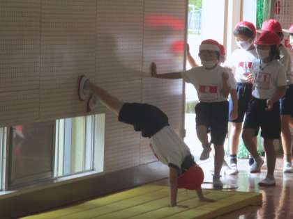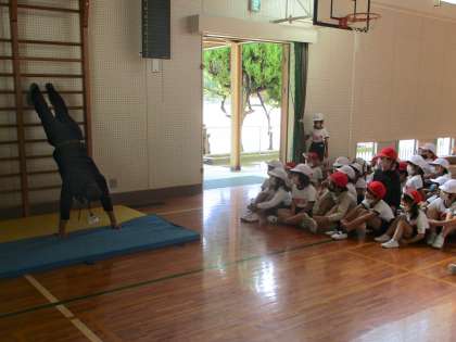 壁や肋木を使って,逆立ちのための練習をしていました。