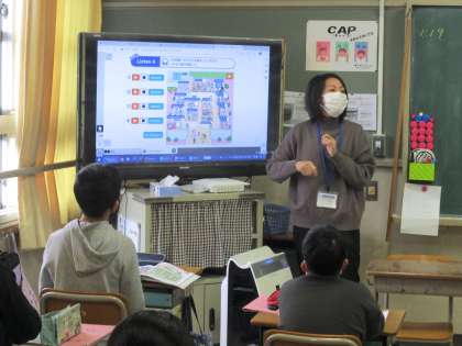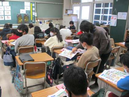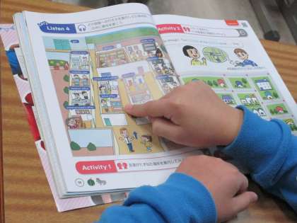 学校の地図を使って,行きたい場所を英語で表現する学習をしていました。