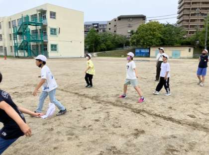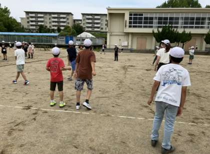 今日は晴れたので、先生たちも入って、ドッジボールをしました。