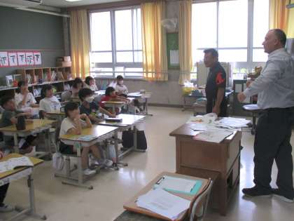 NSの先生と外国語活動を行いました。数の読み方をゲーム形式で学んでいました。