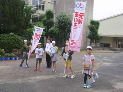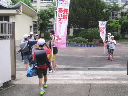 今日と明日は児童会があいさつ運動と募金活動をしています。校門がいつもよりにぎやかでした。朝からあいさつの声があふれる、とてもいい風景でした。