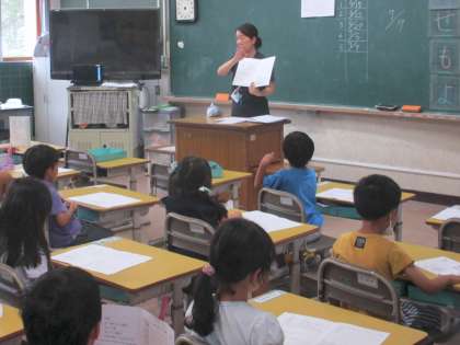 来週月曜日にはじめての水泳授業があります。そのための水泳カードの説明をしていました。おうちの人にも読んでもらってくださいね。