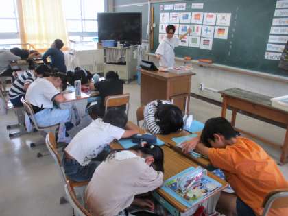 国名をゲーム形式で学習しています。とても楽しいゲームでした。国名と国旗は覚えられたかな?