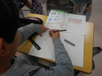 コンパスを使って円を描く問題に挑戦していました。コンパスもうまく使えるようになりました。