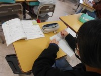 「読み手が納得するように、書き表し方を工夫して意見文を書こう」がめあてです。それぞれが自分でテーマを決めて文章構成も考えていました。さて、この時間の自己評価はどうなったのでしょうか?