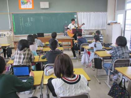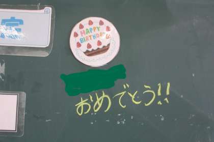今日は学級に誕生日の人がいました。この学級では担任の先生がお祝いの歌をプレゼントしています。教室の外まで楽しい雰囲気があふれていました。