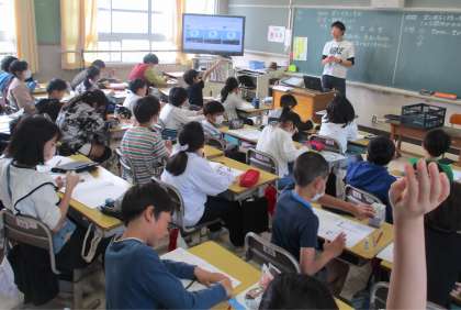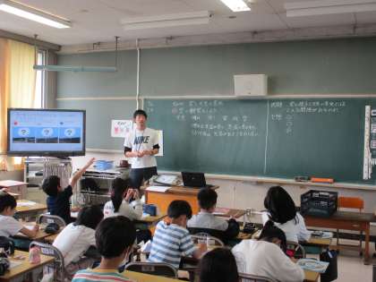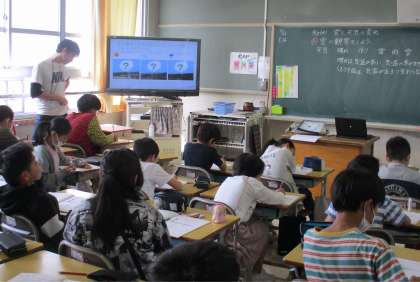 雲の様子と天気の変化についての学習です。晴れの日は雲がどうなっているのかなど、晴れや曇りや雨の時の雲の様子について、みんなで確認していました。