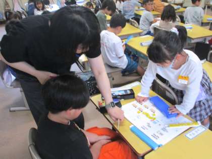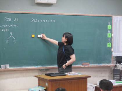 「8はいくつはいくつ」の学習です。算数ブロックも使って、確かめていました。