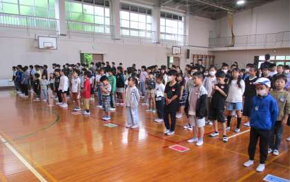 久しぶりの全校朝礼です。今週末にある体育大会への取組について、校長先生からお話がありました。
