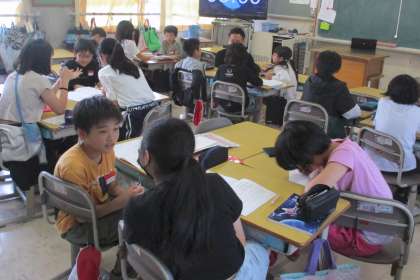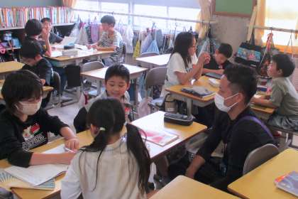 何をどのように聞いたらいいのかを考えて、「インタビュー」をグループでしていました。