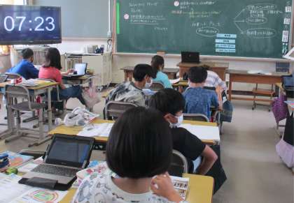 憲法や政治の学習です。投票率が低いとどんな問題があるかを考えました。また、自分で学習のまとめをしていました。
