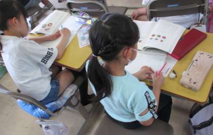 子どもたちのノートをTVに映し出して、みんなで考えを共有していました。