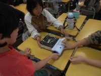 どうしたら高く跳べるかを考えて、走高跳の記録表に自分の目標を考えて書いていました。