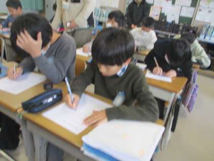 授業に入ってすぐ、計算問題に取り組んでいました。今日は分数の計算です。計算に集中していました。
