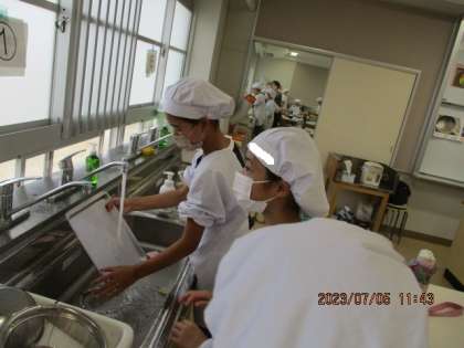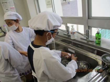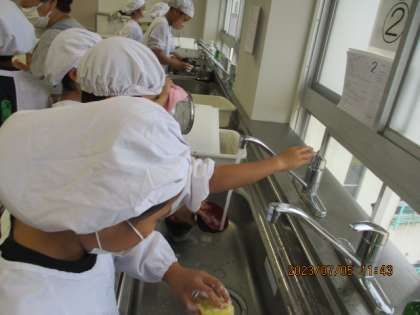 美味しく食べた後は、後片付けです。協力して、使う前より美しくをめあてにがんばりましょう!