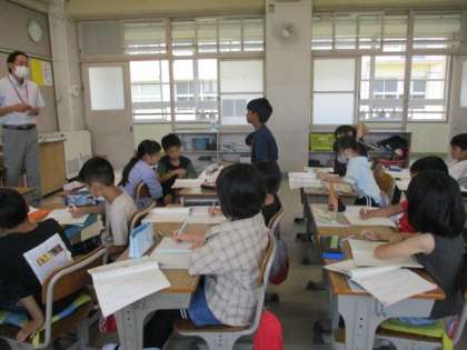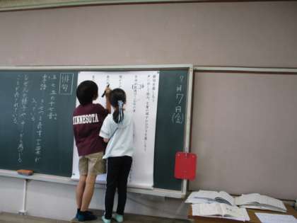 俳句の学習です。今日は季語を見つけたり、五七五に区切ったりする活動をしていました。