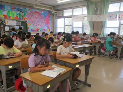 2年生 朝読書 公開日 2023/09/26 更新日 2023/09/26 学校紹介 8:30から読書の時間が設定されていますが、25分に教室の前を通りかかると、既に本を読み始めていました。本の世界に入り込んでいる様子です。