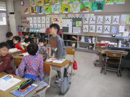 「すがたを変える大豆」の学習です。今日は、説明文の構成について確認していました。