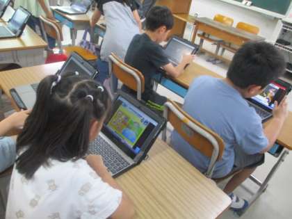 その間、子どもたちはキーボードレッスンをしたり、ドリルをしたり、自分たちで考えて学習をしていました。
