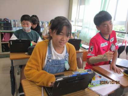 6年生 英語 公開日 2024/10/24 更新日 2024/10/24 6年 担任の先生におすすめしたい海外旅行先というテーマで学習していました。行った先で、どんなことができるのかも説明するようです。