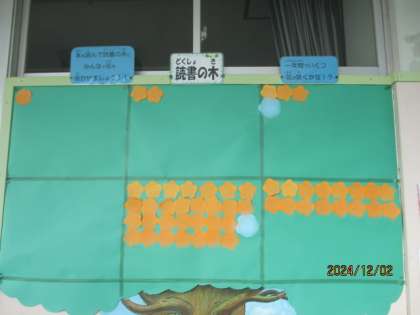 「読書の木」に50冊の花や100冊の花が次々に咲いています。これから、まだまだたくさん咲くような気がします。楽しみです。