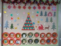 図書室前の掲示が新しくなっていました。○○の秋の次は,クリスマスです。赤,緑,金...