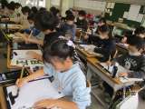 「正月」と毛筆で書いています。先生が水書で書いたお手本をしっかり見て、一画ずつ丁...