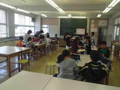 本日3・4時間目に家庭科で裁縫の学習をしました。玉結び,玉止めなど,ひと針ひと針丁寧に縫っていました。