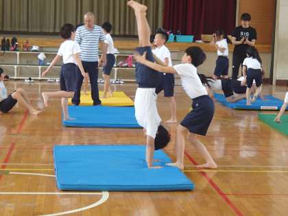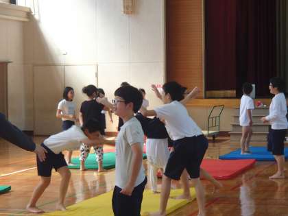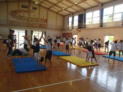 組体操の練習をしました。逆立ちなど基礎的な練習から始めています。