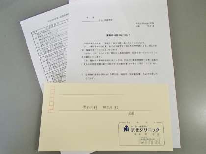 運動器検診に関する書類をお子さまへお渡ししました。(1〜4年生 該当者)