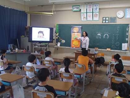 本日2時間目に,「おなかげんき?」の授業をしてもらいました。どんな「うんち」がよいのか,子どもの腸の長さは,5メートルもある等,おなかについて学ぶことができました。