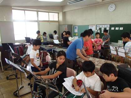 本日2時間目に4・5年生合同で連合音楽会の練習をしました。はじめにパートリーダーを決めて,楽器の練習をしました。