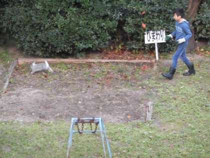 飼育委員の子どもたちが、飼育小屋の中を掃除している間、ウサギさんたちは、中庭の囲いの中にいました。