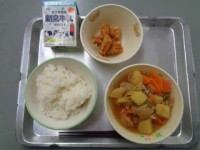今日のこんだてごはん・牛乳卵スープビビンバ風さつまスティック「ビビンバ」韓国語で...
