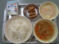今日のこんだてごはん・牛乳かけたらクリームドリアコンソメスープ焼きウィンナー「は...