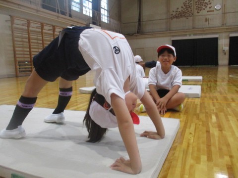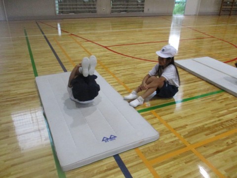 マット運動では、ゆりかごやブリッジの練習をしました。