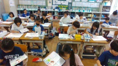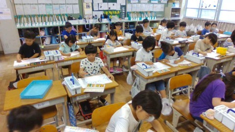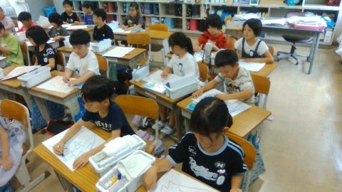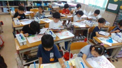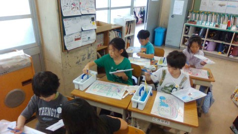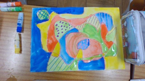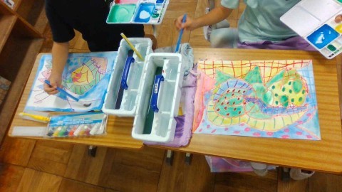 2年 図工 公開日 2025/09/05 更新日 2025/09/05 2年 2学期初めての図工は「線と色であそぼう」ということで、クレパスで線を描いて絵具で色を塗りました。描いた線を見ながら「○○に見える!」と、とても楽しそうに取り組んでいました。 +4