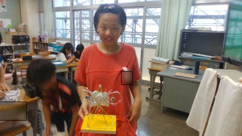 U字釘に色をつけたり、台に世界観を現したり、こどもたちの工夫が楽しいです。