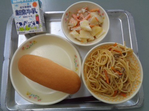 今日のスパゲティには、しいたけ・しめじ・えのきたけが入っていました。
