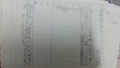 はじめ・中・終わりの3つに分けて,どんなことが書かれているのか話し合いました。