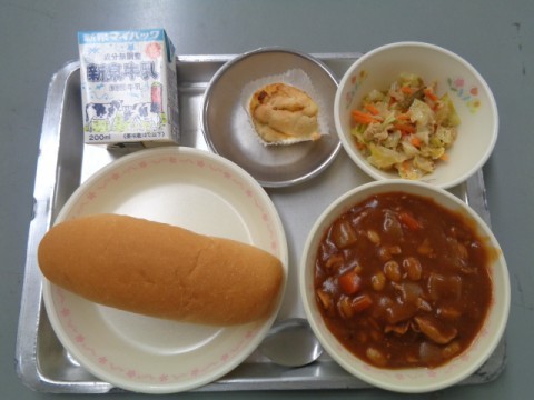 とうもろこしの粉を使ってつくるパンのようなもので,給食ではコーンクリームで作っています。