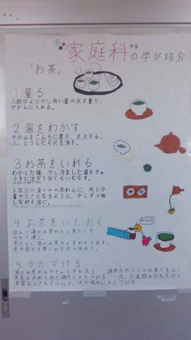 家庭科室の前には,学びをまとめた制作も掲示しています。