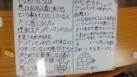 そこから,自分の人生について考えました。それは,自分はこれからどうするかです。やなせさんのように人を助け,自分の進みたい道を進もうと思いました。どんなに批判されようが,自分の道を。