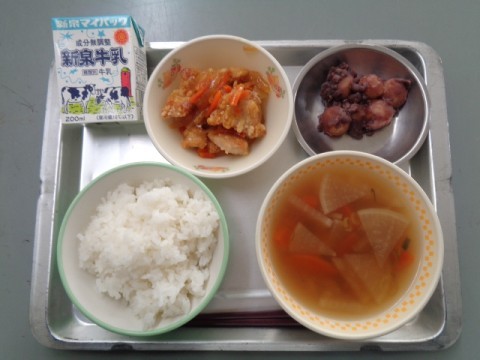 鏡餅には神様が宿ると考えられています。元気に過ごせるように,願いをこめながら「白玉ぜんざい」を食べましょう。