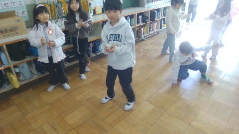 こまをまわす練習をしました。