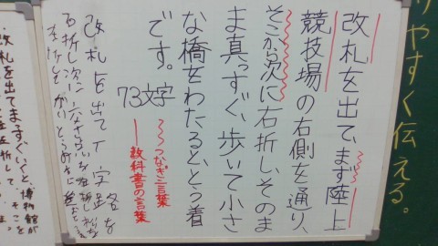 分かりやすく道案内をするために,「つなぎ言葉」を使って文章を書きました。
